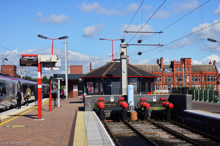 Auf dem Weg nach Liverpool. In der Station Wigan verlassen wir den Virgin Train und steigen in die Holzklasse um. Ade Klimaanlage.