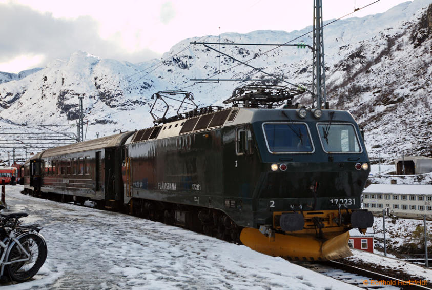 Die Bahnstation Myrdal ist gleichzeitig Endpunkt der Flåmsbahn . Bild aus dem Jahre 12.10.2011.