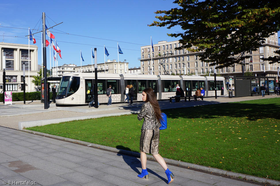 06.10.2013: Die Rundreise führte uns unter anderem nach Le Havre. Perfekt, verkehrt hier doch seit Dezember 2012 eine neue Tram. Bei einem gemeinsamen Stadtrundgang ließ sich die zwangsweise Benutzung mit einbauen.Im Hafen von Le Havre liegt die Kombifähre (Ro/Ro und Autofähre) Norman Yoyager, sie verkehrt zwischen Le Havre und Portsmouth.