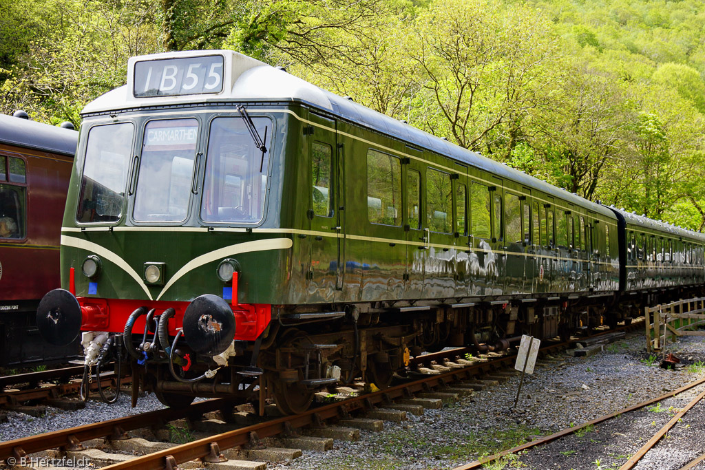 13.05.2015 South Wales. In der Station Llwyfan Cerrig. Ein Triebwagen vom Typ Class 117 mit folgenden Einheiten: DMBS 51347, TCL 59.508 und DMS 51401 der Bronwydd Arms Gwili Railway aus dem Jahre 1950.