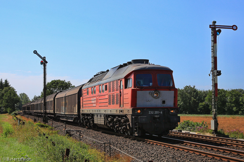 18.07.2015: 232 201-4 durchfährt Langenhorn Richtung Norden.