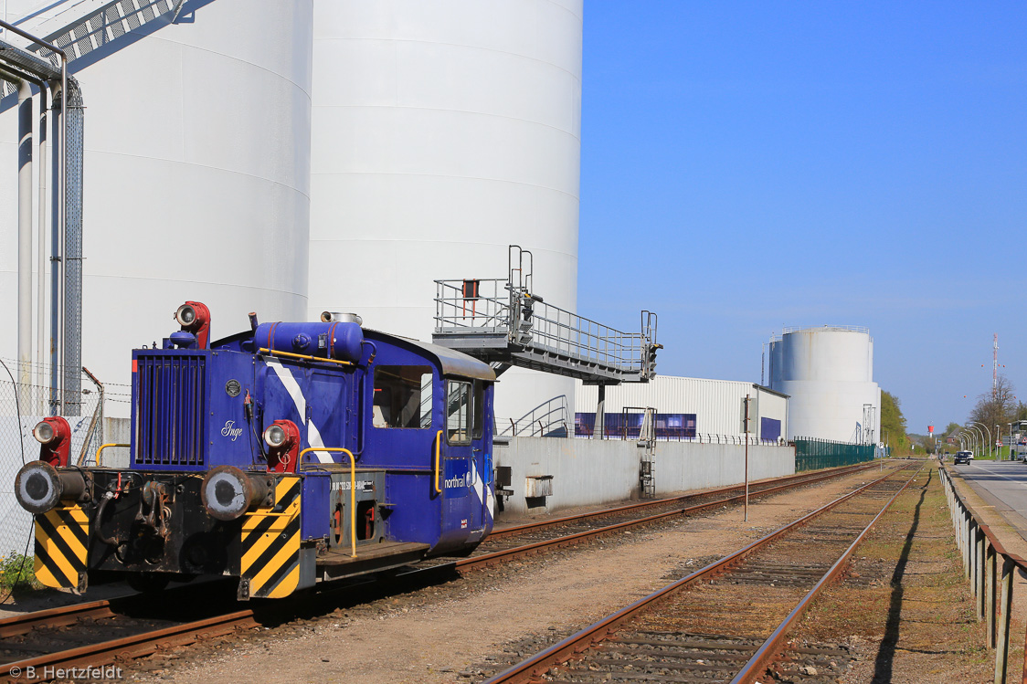 06.05.2016: Lok Inge verschiebt nach dem Abstellen der Lok Berta die Kesselwagen in Kiel-Wik.