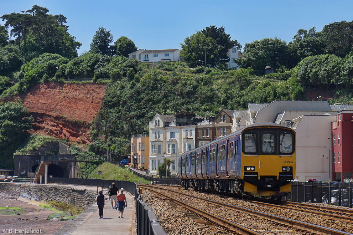 30.06.2016: Dawlish Sea Wall mit Class 150 mit dem Ziel Exmouth.
