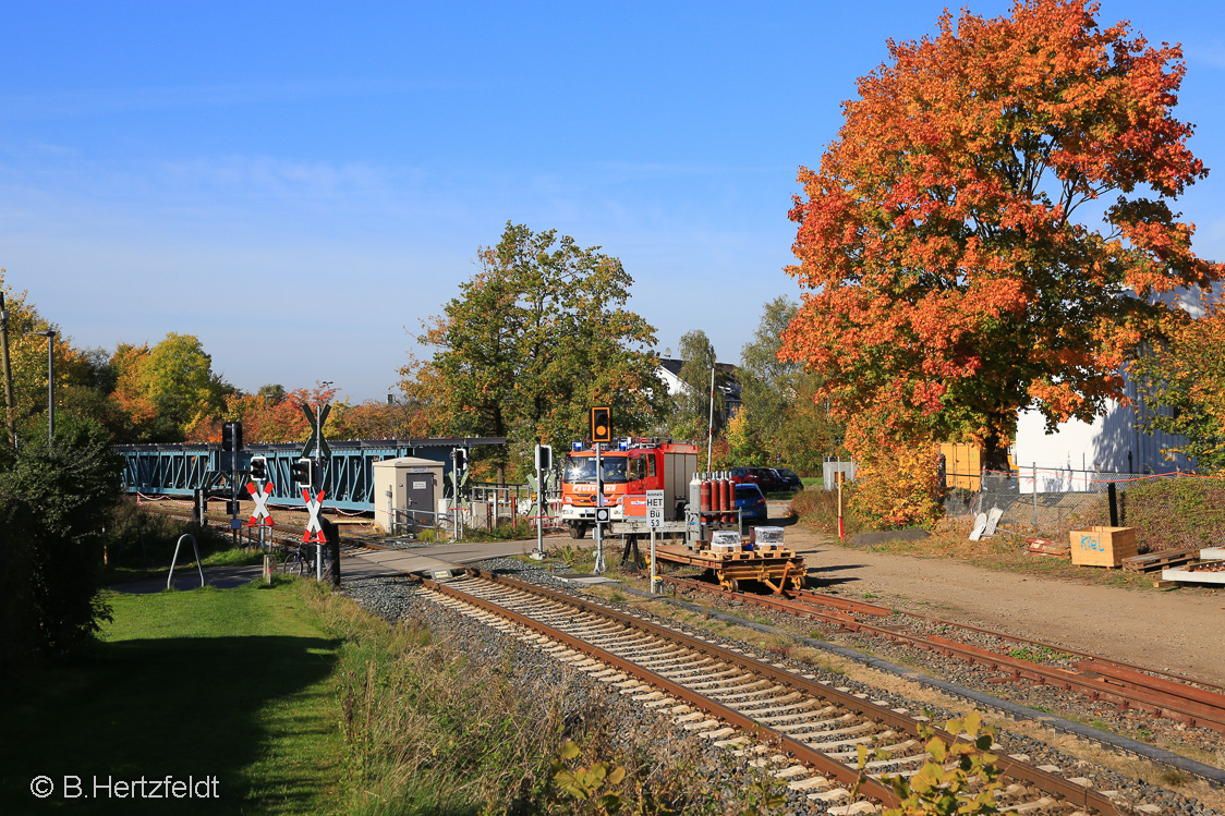 08.-17.10.2018: Vossloh auf Testfahrt. Brückenbaustelle über die Schwentine bei Kiel-Oppendorf. Es ging über mehrere Tage.