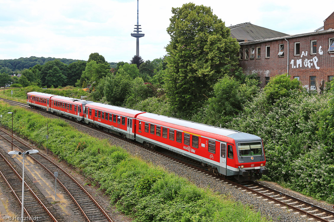 15.06.2018: Kieler Woche Zusatzleistungen. Ein 628 Doppel föhrt in den Kieler Bf. ein.