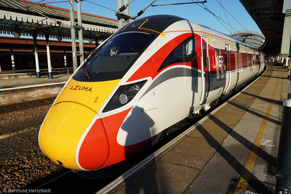 04.12.2019: Seit September 2019 sind die neuen Hitachi Class 801 für Azuma in Edinburgh anzutreffen. Sie verbinden die schottische Stadt mit London King's Cross. Hier Halt in York.