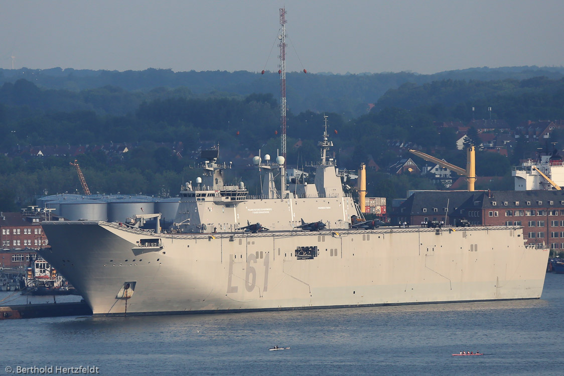 06.06.2019: Spanischer Fluzeugträger Juan Carlos I ist das größte Schiff im Marinehafen. Länge 231 m Breite 32 m. Indienststellung 2010.