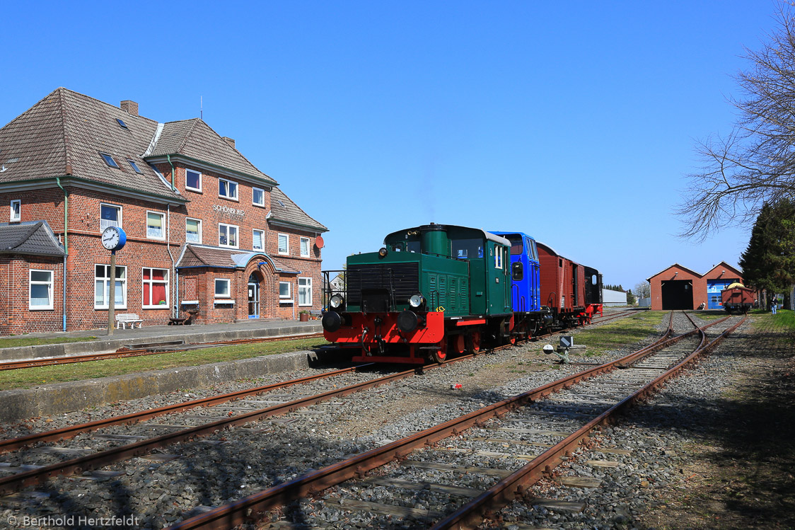 19.04.2019: Der VVM mit allen fahrbereiten Loks im Bf. Schönberg.