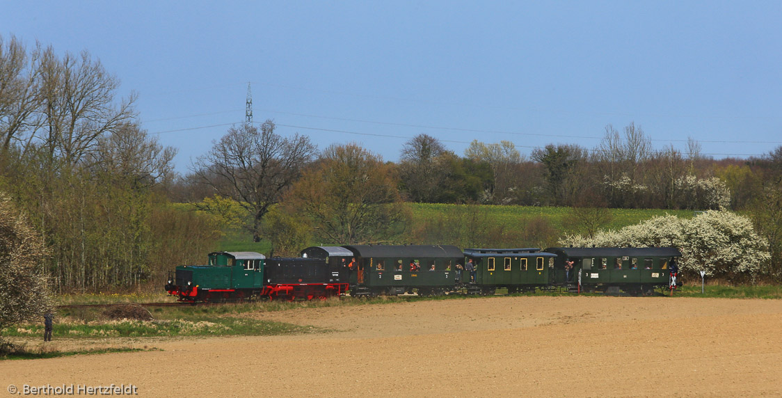 19.04.2019: Mit dem Museumszug am Haken kurz vor Probsteierhagen.