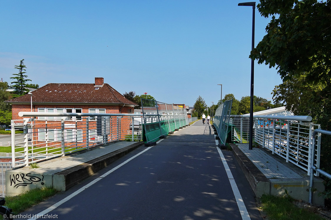 25.08.2019: Die zweite Brücke überspannt die Gutenbergstrasse. Kurz darauf folgt das Gewergebiet am Grasweg.
