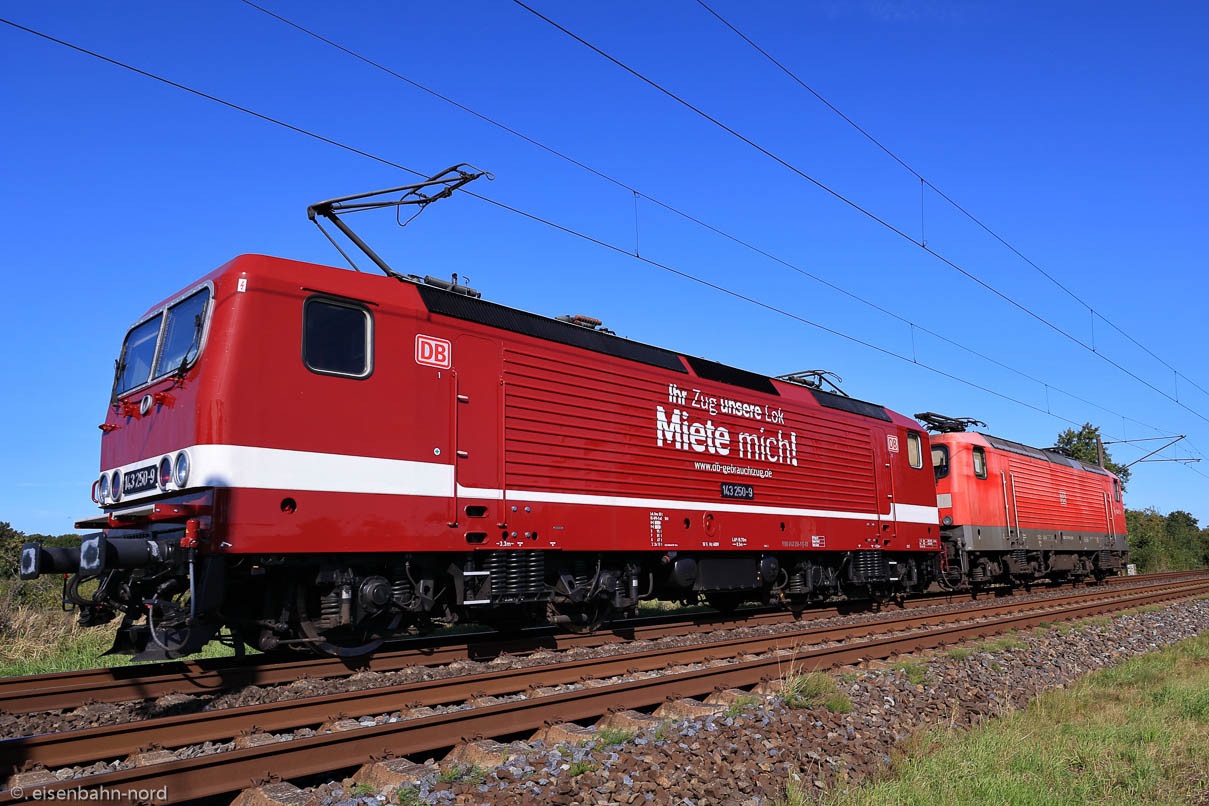 13.-29.09.2020: Lokzug von Vossloh mit 5 Loks Richtung Friedrichsort, 143 250-9 und andere um Kiel.