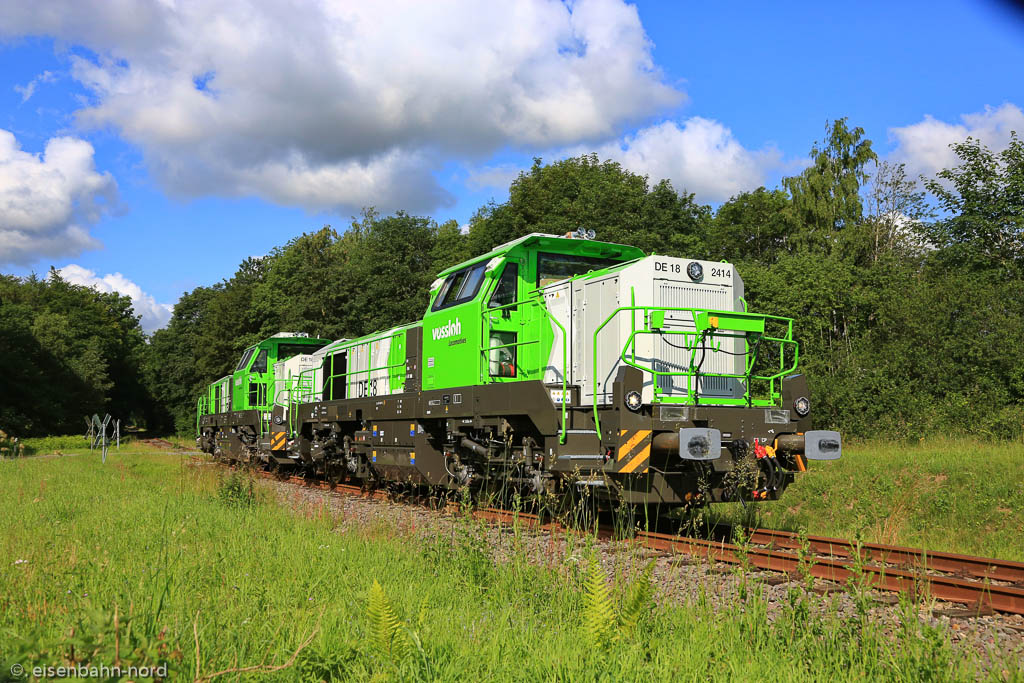 23.06.2020: Vossloh geht auf Testfahrt. Auf dem Abschnitt Bü Lummerbruch - Bü Klausdorfer Straße in Altenholz-Klausdorf finden die Fahrten statt.
