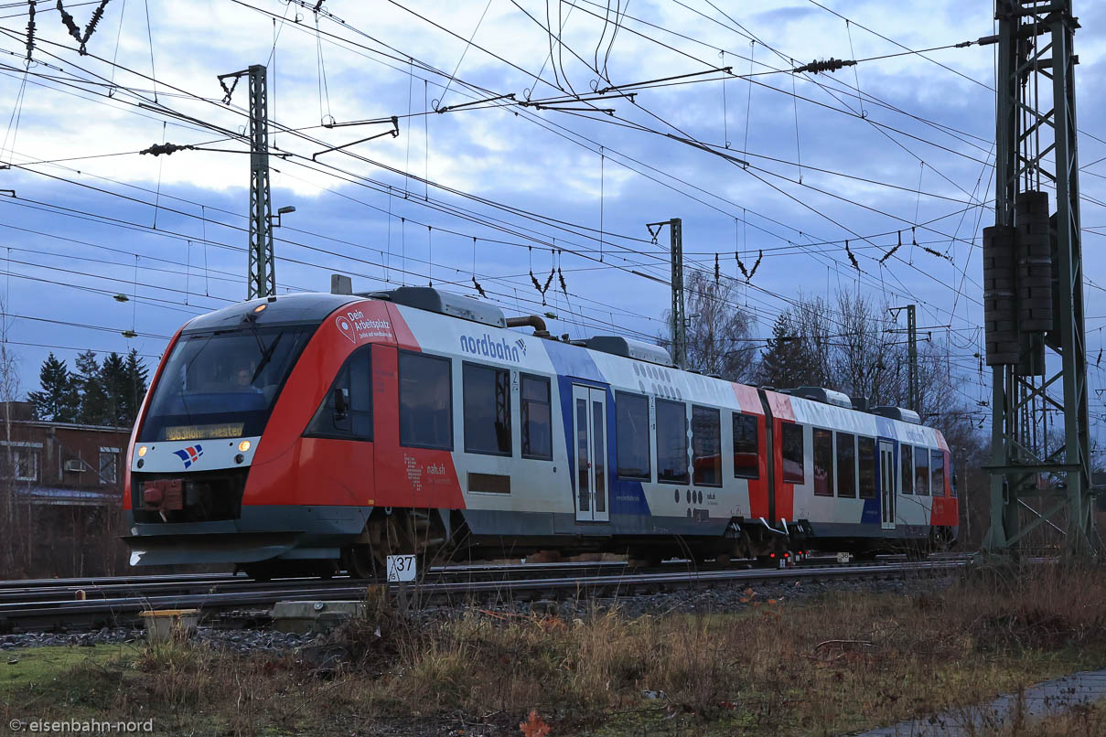 12.01.2021: Nordbahn von Neumünster Richtung Hohenwested. An dem Tag aus Gleis 2