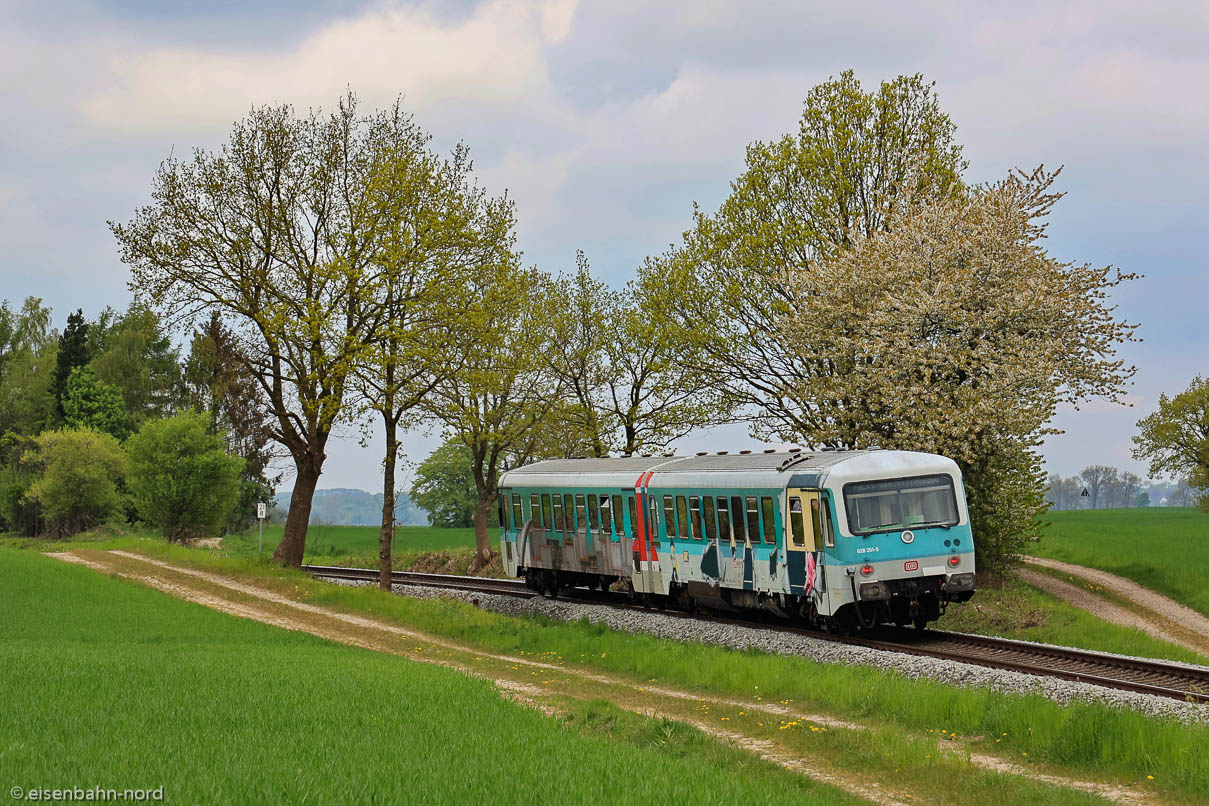 07.05.2022: Line Kiel-Lübeck, bei Wahltorf. IKN 628 201-5 auf einer Sonderfahrt.