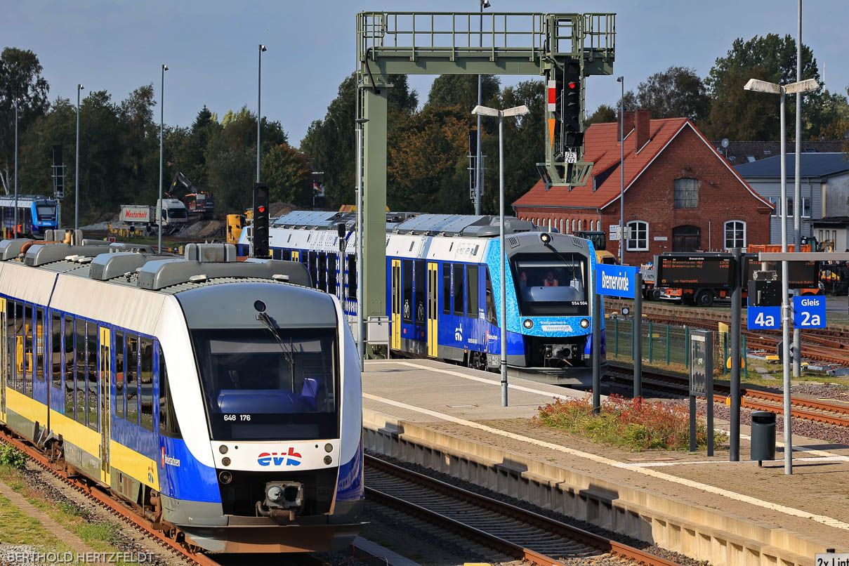 04.10.2022: Besuch der EVB in und um Bremervörde. Um die Mittagszeit im Bahnhof der EVB.