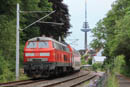 16.-30.06.2023: Bute Verkehre zur Kiel-Woche. RDC V60 auf der Anschlussbahn Richtung Friedrichsort. Railadventure mit Überführung im Eidertal.