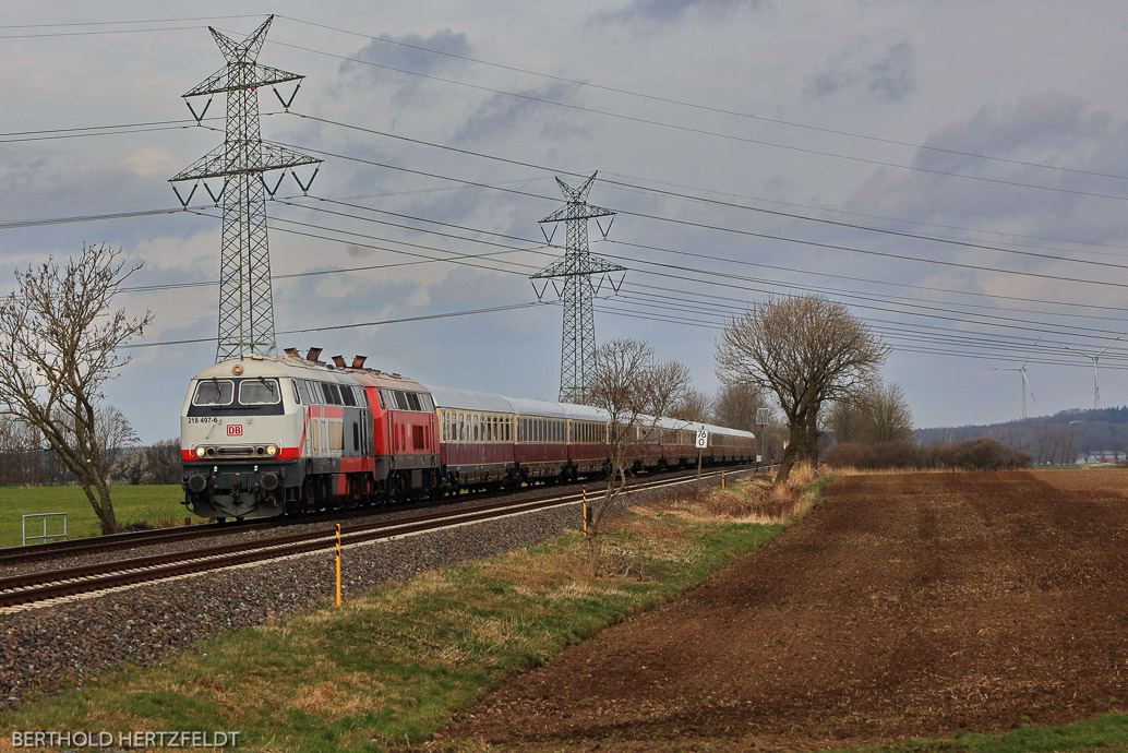 01.-31.03.2024. Diverse 218 xxx auf der Marschbahn. 5x DE18 ausgeliefert. Präsentation V 200 und VT in Neumünster.